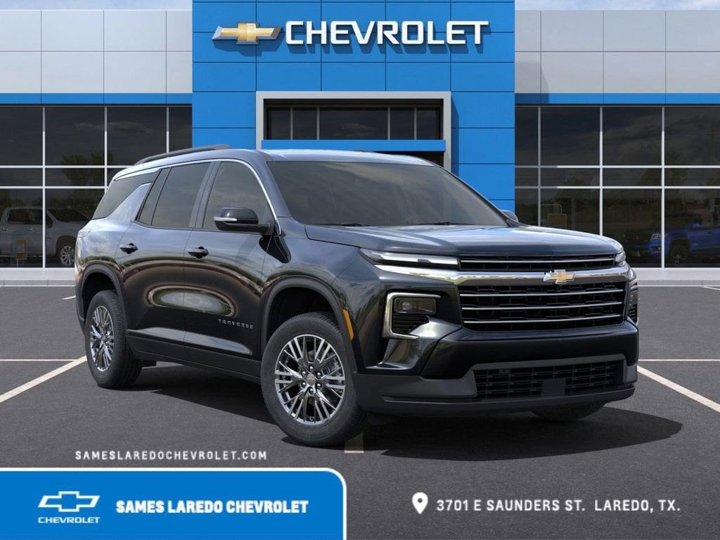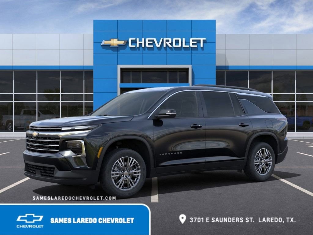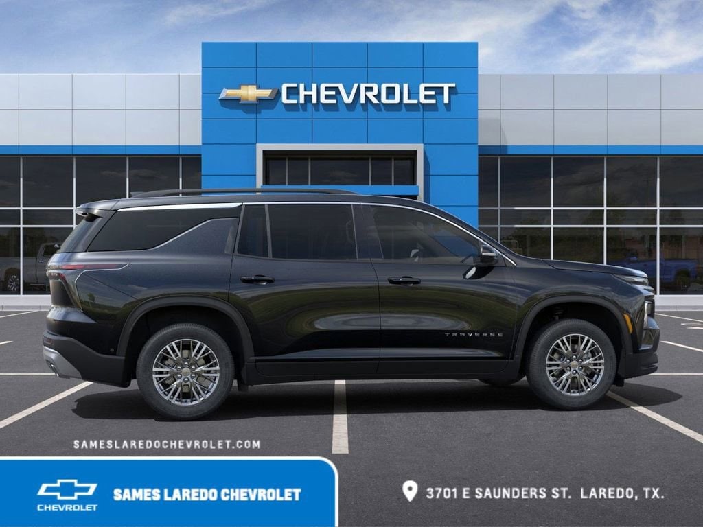This 2025 Chevrolet Traverse LT 1LT in Mosaic Black Metallic comes with the following features: 2.5L DOHC 8-Speed Automatic FWD Driver Confidence Package (HD Surround Vision, Power Outlet, Rear Pedestrian Alert, and Traffic Sign Recognition), Floor Liner Package (1st and 2nd Row All-Weather Floor Liners and 3rd Row All-Weather Floor Liner), Preferred Equipment Group 1LT, 3rd row seats: split-bench, 4-Way Manual Front Passenger Seat Adjuster, 4-Wheel Disc Brakes, 6 Speakers, 6-Speaker Audio System Feature, 8-Way Power Driver Seat Adjuster, ABS brakes, Air Conditioning, Alloy wheels, AM/FM radio: SiriusXM with 360L, Apple CarPlay/Android Auto, Auto High-beam Headlights, Automatic temperature control, Brake assist, Bumpers: body-color, Child-Seat-Sensing Airbag, Compass, Delay-off headlights, Driver door bin, Driver vanity mirror, Dual front impact airbags, Dual front side impact airbags, Electronic Stability Control, Emergency communication system: OnStar, Four wheel independent suspension, Front anti-roll bar, Front Bucket Seats, Front Center Armrest, Front dual zone A/C, Front reading lights, Fully automatic headlights, Heated door mirrors, Heated front seats, Heated steering wheel, Illuminated entry, Low tire pressure warning, Navigation System, Occupant sensing airbag, Outside temperature display, Overhead airbag, Overhead console, Panic alarm, Passenger door bin, Passenger vanity mirror, Power door mirrors, Power driver seat, Power Liftgate, Power steering, Power windows, Premium Cloth Seat Trim, Radio data system, Radio: : Audio System w/17.7 Diagonal Display, Rear air conditioning, Rear anti-roll bar, Rear reading lights, Rear window defroster, Rear window wiper, Remote keyless entry, Security system, SiriusXM with 360L Trial Subscription, Speed control, Speed-sensing steering, Spoiler, Steering wheel mounted audio controls, Tachometer, Telescoping steering wheel, Tilt steering wheel, Traction control, Trip computer, Turn signal indicator mirrors, Variably intermittent wipers, Voltmeter, and Wheels: 18 Grazen Metallic Machined-Face Aluminum.Sames Auto Group stores have been in business for over 115 years, as part of the Oldest Auto Group in Texas we're committed to providing exceptional service before, during, and after your purchase. Our expert team at Sames Chevrolet of Laredo will ensure you drive away completely satisfied. Schedule your virtual consultation or test drive today. No hassle remote delivery to Houston, Austin and San Antonio and the rest of Texas available upon request.