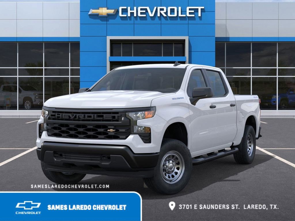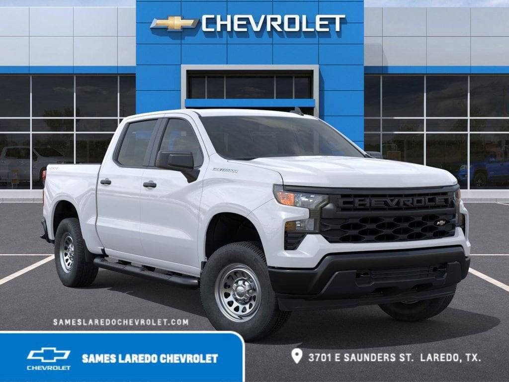 This 2026 Chevrolet Silverado 1500 WT in Summit White comes with the following features: 2.7L I4 Turbocharged DOHC 16V LEV3-SULEV30 310hp 8-Speed Automatic 4WD Preferred Equipment Group 1WT (3.5 Monochromatic Display Driver Info Center, 4-Way Manual Driver Seat Adjuster, 40/20/40 Front Split-Bench Seat, Black (Semi-Gloss) Front Bumper, Black (Semi-Gloss) Rear Bumper, Black Manual Outside Mirrors, Bluetooth® For Phone, Electronic Cruise Control, Front Frame-Mounted Black Recovery Hooks, HD Rear Vision Camera, Inside Rearview Mirror with Tilt, Locking Tailgate, Manual Tailgate Function with No EZ Lift, Manual Tilt Wheel Steering Column, OnStar Services Capable, Power Front Windows with Driver Express Up/Down, Power Front Windows with Passenger Express Down, Power Rear Windows with Express Down, Rear 60/40 Folding Bench Seat (folds Up), Remote Keyless Entry, Rubberized-Vinyl Floor Covering, SiriusXM Delete, Solar Absorbing Tinted Glass, Standard Tailgate, Teen Driver, Tire Pressure Monitoring System, Vinyl Seat Trim, Wheels: 17 x 8 Ultra Silver Painted Steel, and Wi-Fi Hot Spot Capable), Standard Suspension Package, 8-Speed Automatic, 4WD, Jet Black Vinyl, 220 Amp Alternator, 3.42 Rear Axle Ratio, 4-Wheel Disc Brakes, 4 Black Round Assist Steps, 6 Speakers, 6-Speaker Audio System, ABS brakes, Air Conditioning, Apple CarPlay/Android Auto, Auto High-beam Headlights, Automatic Emergency Braking, Brake assist, Compass, Delay-off headlights, Driver door bin, Dual front impact airbags, Dual front side impact airbags, Electronic Stability Control, Emergency communication system: OnStar, Following Distance Indicator, Forward Collision Alert, Front anti-roll bar, Front Center Armrest w/Storage, Front License Plate Kit, Front Pedestrian Braking, Front reading lights, Front wheel independent suspension, Fully automatic headlights, Illuminated entry, IntelliBeam Automatic High Beam on/Off, Lane Keep Assist with Lane Departure Warning, Low tire pressure warning, Occupant sensing airbag, Outside temperature display, Overhead airbag, Overhead console, Panic alarm, Passenger door bin, Passenger vanity mirror, Power steering, Power windows, Premium audio system: Chevrolet Infotainment 3, Radio data system, Radio: Chevrolet Infotainment 3 System, Rear reading lights, Rear step bumper, Remote keyless entry, Speed control, Speed-sensing steering, Split folding rear seat, Tachometer, Tilt steering wheel, Traction control, Trip computer, Variably intermittent wipers, and Voltmeter.Sames Auto Group stores have been in business for over 115 years, as part of the Oldest Auto Group in Texas we're committed to providing exceptional service before, during, and after your purchase. Our expert team at Sames Chevrolet of Laredo will ensure you drive away completely satisfied. Schedule your virtual consultation or test drive today. No hassle remote delivery to Houston, Austin and San Antonio and the rest of Texas available upon request. Dealer Adds and Tax, Title, and License extra. $1000 - Bonus Cash. Exp. 03/02/2026 $3000 - Customer Cash. Exp. 03/02/2026