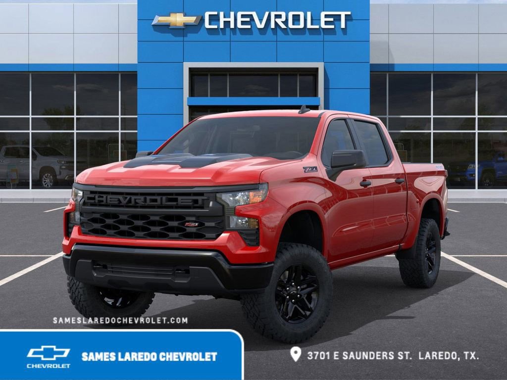 This 2026 Chevrolet Silverado 1500 Custom Trail Boss in Red Hot comes with the following features: EcoTec3 5.3L V8 10-Speed Automatic 4WD Custom Convenience Package (Electric Rear-Window Defogger, EZ Lift Power Lock & Release Tailgate, LED Cargo Area Lighting, Remote Vehicle Starter System, and Theft Deterrent System (Unauthorized Entry)), Dark Appearance Package (Black Chrome Exhaust Tip (LPO), Chevytec Spray-On Black Bedliner, Front Frame-Mounted Black Recovery Hooks, and Single Outlet Exhaust), Preferred Equipment Group 2CX (10-Way Power Driver Seat w/Lumbar, 120-Volt Bed Mounted Power Outlet, 120-Volt Interior Power Outlet, 3.5 Monochromatic Display Driver Info Center, Auto-Locking Rear Differential, Bluetooth® For Phone, Color-Keyed Carpeting Floor Covering, Deep-Tinted Glass, Dual Rear USB Ports (Charge Only), Electronic Cruise Control, Front Rubberized Vinyl Floor Mats, HD Rear Vision Camera, Manual Tilt Wheel Steering Column, OnStar Services Capable, Performance Red Recovery Hooks, Power Front Windows w/Driver Express Up/Down, Power Front Windows w/Passenger Express Down, Power Rear Windows w/Express Down, Rear 60/40 Folding Bench Seat (Folds Up), Rear Rubberized-Vinyl Floor Mats, Remote Keyless Entry, SiriusXM Trial Subscription, Standard Tailgate, Teen Driver, Tire Pressure Monitoring System, and Wi-Fi Hot Spot Capable), Suspension Package (Heavy-Duty Air Filter and Hill Descent Control), Trailering Package (Hitch Guidance), 10-Speed Automatic, 4WD, Jet Black Cloth, 170 Amp Alternator, 220 Amp Alternator, 4-Wheel Disc Brakes, 40/20/40 Front Split-Bench Seat, 6 Speakers, 6-Speaker Audio System, ABS brakes, Air Conditioning, Alloy wheels, AM/FM radio: SiriusXM, Apple CarPlay/Android Auto, Auto High-beam Headlights, Automatic Emergency Braking, Auxiliary External Transmission Oil Cooler, Black Tailgate CHEVROLET Lettering (LPO), Brake assist, Cloth Seat Trim, Compass, Delay-off headlights, Driver door bin, Driver vanity mirror, Dual Exhaust w/Polished Outlets, Dual front impact airbags, Dual front side impact airbags, Electronic Stability Control, Emergency communication system: OnStar, External Engine Oil Cooler, Following Distance Indicator, Forward Collision Alert, Front anti-roll bar, Front Center Armrest w/Storage, Front License Plate Kit, Front Pedestrian Braking, Front reading lights, Front wheel independent suspension, Fully automatic headlights, Heated door mirrors, Illuminated entry, IntelliBeam Automatic High Beam On/Off, Lane Keep Assist w/Lane Departure Warning, Low tire pressure warning, Occupant sensing airbag, Outside temperature display, Overhead airbag, Overhead console, Panic alarm, Passenger door bin, Passenger vanity mirror, Power door mirrors, Power driver seat, Power steering, Power windows, Premium audio system: Chevrolet Infotainment 3, Radio data system, Radio: Chevrolet Infotainment 3 System, Rear reading lights, Rear step bumper, Rear Wheelhouse Liners, Rear window defroster, Remote keyless entry, Security system, Speed control, Speed-sensing steering, Split folding rear seat, Tachometer, Tilt steering wheel, Traction control, Trip computer, Variably intermittent wipers, Voltmeter, and Wheels: 18 x 8.5 Black Painted Aluminum.Sames Auto Group stores have been in business for over 115 years, as part of the Oldest Auto Group in Texas we're committed to providing exceptional service before, during, and after your purchase. Our expert team at Sames Chevrolet of Laredo will ensure you drive away completely satisfied. Schedule your virtual consultation or test drive today. No hassle remote delivery to Houston, Austin and San Antonio and the rest of Texas available upon request. Dealer Adds and Tax, Title, and License extra. $1500 - Bonus Cash. Exp. 03/02/2026 $3250 - Customer Cash. Exp. 03/02/2026