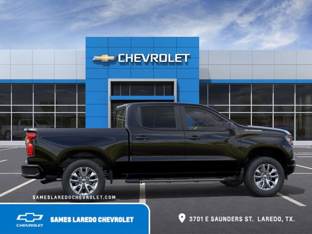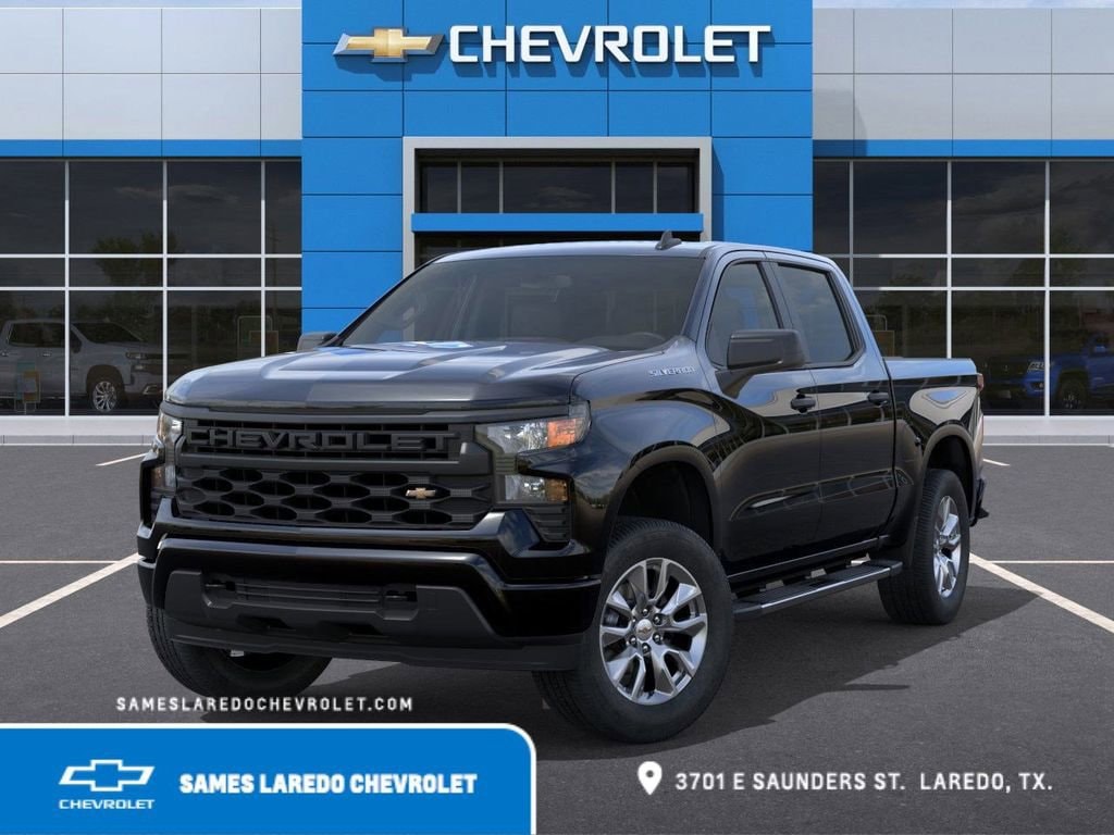 This 2026 Chevrolet Silverado 1500 Custom in Black comes with the following features: 2.7L I4 Turbocharged DOHC 16V LEV3-SULEV30 310hp 8-Speed Automatic RWD Custom Convenience Package (Electric Rear-Window Defogger, EZ Lift Power Lock and Release Tailgate, LED Cargo Area Lighting, Remote Vehicle Starter System, and Theft Deterrent System (unauthorized Entry)), Custom Value Package, High Capacity Suspension Package, Preferred Equipment Group 1CX (10-Way Power Driver Seat with Lumbar, 120-Volt Bed Mounted Power Outlet, 120-Volt Interior Power Outlet, 3.5 Monochromatic Display Driver Info Center, 40/20/40 Front Split-Bench Seat, Bluetooth® For Phone, Cloth Seat Trim, Color-Keyed Carpeting Floor Covering, Deep-Tinted Glass, Dual Rear USB Ports (charge Only), Electronic Cruise Control, Front Frame-Mounted Black Recovery Hooks, Front Rubberized Vinyl Floor Mats, HD Rear Vision Camera, Manual Tilt Wheel Steering Column, OnStar Services Capable, Power Front Windows with Driver Express Up/Down, Power Front Windows with Passenger Express Down, Power Rear Windows with Express Down, Rear 60/40 Folding Bench Seat (folds Up), Rear Rubberized-Vinyl Floor Mats, Remote Keyless Entry, SiriusXM Trial Subscription, Standard Tailgate, Teen Driver, Tire Pressure Monitoring System, and Wi-Fi Hot Spot Capable), Trailering Package (Hitch Guidance), 8-Speed Automatic, Black Cloth, 3.42 Rear Axle Ratio, 4-Wheel Disc Brakes, 6 Speakers, 6-Speaker Audio System, 6 Rectangular Chrome Tubular Assist Steps, ABS brakes, Air Conditioning, All-Weather Floor Liner, Alloy wheels, AM/FM radio: SiriusXM, Apple CarPlay/Android Auto, Auto High-beam Headlights, Auto-Locking Rear Differential, Automatic Emergency Braking, Brake assist, Bumpers: body-color, Compass, Delay-off headlights, Driver door bin, Driver vanity mirror, Dual front impact airbags, Dual front side impact airbags, Electronic Stability Control, Emergency communication system: OnStar, Following Distance Indicator, Forward Collision Alert, Front anti-roll bar, Front Center Armrest w/Storage, Front License Plate Kit, Front Pedestrian Braking, Front reading lights, Front wheel independent suspension, Fully automatic headlights, Heated door mirrors, Illuminated entry, IntelliBeam Automatic High Beam on/Off, Lane Keep Assist with Lane Departure Warning, Low tire pressure warning, Occupant sensing airbag, Outside temperature display, Overhead airbag, Overhead console, Panic alarm, Passenger door bin, Passenger vanity mirror, Power door mirrors, Power driver seat, Power steering, Power windows, Premium audio system: Chevrolet Infotainment 3, Radio data system, Radio: Chevrolet Infotainment 3 System, Rear reading lights, Rear step bumper, Rear window defroster, Remote keyless entry, Security system, Speed control, Speed-sensing steering, Split folding rear seat, Tachometer, Tilt steering wheel, Traction control, Trip computer, Variably intermittent wipers, Voltmeter, and Wheels: 20 x 9 Bright Silver Painted Aluminum.Sames Auto Group stores have been in business for over 115 years, as part of the Oldest Auto Group in Texas we're committed to providing exceptional service before, during, and after your purchase. Our expert team at Sames Chevrolet of Laredo will ensure you drive away completely satisfied. Schedule your virtual consultation or test drive today. No hassle remote delivery to Houston, Austin and San Antonio and the rest of Texas available upon request. Dealer Adds and Tax, Title, and License extra. $1000 - Bonus Cash. Exp. 03/02/2026 $3000 - Customer Cash. Exp. 03/02/2026