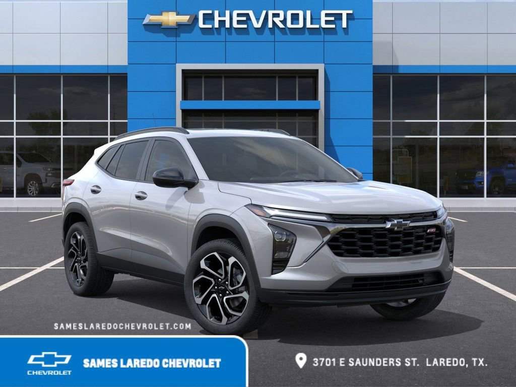 This 2026 Chevrolet Trax 2RS in Sterling Gray Metallic comes with the following features: ECOTEC 1.2L Turbo 6-Speed Automatic FWD Driver Confidence Package (Adaptive Cruise Control, Lane Change Alert with Side Blind Zone Alert, Rear Cross Traffic Alert, and Rear Park Assist), License Plate Front Mounting Package, Preferred Equipment Group 2RS, Sunroof Package (Power Sliding Glass Sunroof with Manual Shade and Wireless Charging), 2-Way Adjustable Front Head Restraints, 2-Way Power Driver Lumbar Seat Adjuster, 3.50 Final Drive Axle Ratio, 4-Way Manual Front Passenger Seat Adjuster, 4-Wheel Disc Brakes, 6 Speakers, 6-Speaker Audio System Feature, 8-Way Power Driver Seat Adjuster, ABS brakes, Air Conditioning, Alloy wheels, AM/FM radio: SiriusXM, Auto High-beam Headlights, Automatic temperature control, Brake assist, Bumpers: body-color, Compass, Delay-off headlights, Driver door bin, Driver vanity mirror, Dual front impact airbags, Dual front side impact airbags, Electronic Stability Control, Emergency communication system: OnStar One Essentials, Evotex Seat Trim, Exterior Parking Camera Rear, Front and Rear Jet Black All-Weather Floor Mats, Front anti-roll bar, Front Bucket Seats, Front Center Armrest, Front reading lights, Front wheel independent suspension, Fully automatic headlights, Heated door mirrors, Heated Driver and Front Passenger Seats, Heated front seats, Heated steering wheel, Illuminated entry, Leather steering wheel, Low tire pressure warning, Occupant sensing airbag, Outside temperature display, Overhead airbag, Overhead console, Panic alarm, Passenger door bin, Passenger vanity mirror, Power door mirrors, Power driver seat, Power steering, Power windows, Premium audio system: Chevrolet Infotainment 3, Radio data system, Radio: AM/FM Stereo Audio System, Rear window defroster, Rear window wiper, Remote keyless entry, Security system, SiriusXM Trial Subscription, Speed control, Split folding rear seat, Spoiler, Sport steering wheel, Steering wheel mounted audio controls, Tachometer, Telescoping steering wheel, Tilt steering wheel, Traction control, Trip computer, Variably intermittent wipers, Wheels: 19 Black-Painted Machined Aluminum, and Wireless Apple CarPlay/Wireless Android Auto.