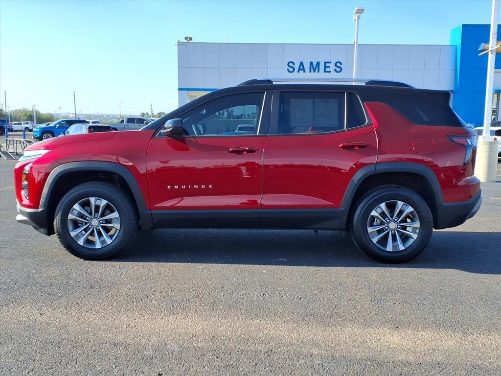 This 2025 Chevrolet Equinox LT in Radiant Red Tintcoat comes with the following features: 1.5L DOHC CVT FWD Convenience Package II (2-Way Power Driver Lumbar Control Seat Adjuster, AutoSense Hands-Free Power Programmable Liftgate, Cabin Humidity & Windshield Sensor, Driver 8-Way Power Seat Adjuster, Dual-Zone Automatic Climate Control, Evotex Seat Trim, Heated Wiper Park, Intermittent Front Rain-Sensing Wipers, Overhead Sunglass Storage, Programmable Universal Home Remote, and Wireless Charging for Devices), Preferred Equipment Group 1LT, Sames Certified Certified, 4-Wheel Disc Brakes, 5.81 Final Drive Axle Ratio, 6 Speakers, ABS brakes, Air Conditioning, Alloy wheels, AM/FM radio: SiriusXM, Auto High-beam Headlights, Brake assist, Bumpers: body-color, Cargo Mat, Cloth Seat Trim, Compass, Delay-off headlights, Driver 6-Way Manual Seat Adjuster, Driver door bin, Driver vanity mirror, Dual front impact airbags, Dual front side impact airbags, Electronic Stability Control, Emergency communication system: OnStar and Chevrolet connected services capable, Four wheel independent suspension, Front anti-roll bar, Front Bucket Seats, Front Center Armrest, Front Passenger 4-Way Manual Seat Adjuster, Front reading lights, Fully automatic headlights, Heated door mirrors, Heated Driver & Front Passenger Seats, Heated front seats, Heated steering wheel, Illuminated entry, Low tire pressure warning, Mosaic Black Metallic Roof, Mosaic Black Mirror Caps, Navigation System, Occupant sensing airbag, Outside temperature display, Overhead airbag, Overhead console, Panic alarm, Passenger door bin, Passenger vanity mirror, Power door mirrors, Power steering, Power windows, Premium audio system: Chevrolet Infotainment 3, Radio data system, Radio: 11.3" Diagonal Advanced Color LCD Display, Rear anti-roll bar, Rear reading lights, Rear seat center armrest, Rear window defroster, Rear window wiper, Remote keyless entry, Roof Rails, Security system, SiriusXM, Speed control, Speed-sensing steering, Split folding rear seat, Spoiler, Steering wheel mounted audio controls, Tachometer, Telescoping steering wheel, Tilt steering wheel, Traction control, Trip computer, Universal Home Remote Non-Functional, Variably intermittent wipers, and Wheels: 17" Grazen Metallic Machined-Face Aluminum.