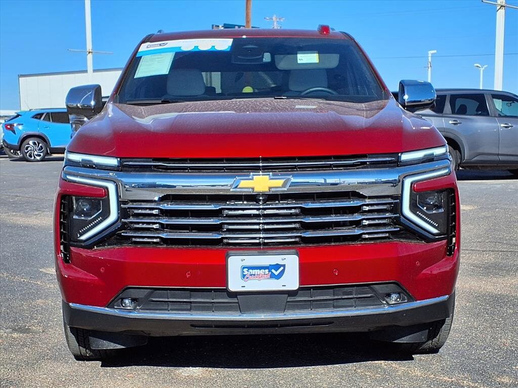 This 2025 Chevrolet Tahoe Premier in Radiant Red Tintcoat comes with the following features: EcoTec3 5.3L V8 10-Speed Automatic with Overdrive RWD License Plate Front Mounting Package, Preferred Equipment Group 1LZ (1st and 2nd Row Color-Keyed Carpeted Floor Mats, 3-Spoke Wrapped Steering Wheel, Bose 10-Speaker Centerpoint Surround Audio System Feature, Bright Front and Rear Door Sill Plates, Color-Keyed Carpeting Floor Covering, Dual Exhaust System, Floor Console, Front Bucket Seats, Front LED Fog Lamps, Front Pedestrian and Bicyclist Braking, Frontal Driver and Outboard Passenger Airbags, Heated 2nd Row Outboard Seats, Heated Steering Wheel, Magnetic Ride Control Suspension, Memory Settings, Power Release 2nd Row Bucket Seats, Power Tilt and Telescopic Steering Column, Rear Power Liftgate, SiriusXM with 360L Trial Subscription, Wireless Phone Charging, 20" x 9" Polished Aluminum Wheels, Auto-Dimming Inside Rear-View Mirror, Chrome Door Handles with Body-Color Strip, LED Headlamps with LED Daytime Running Lamps, Outside Heated Power-Adjustable Mirrors, Remote Start, and Universal Home Remote), Premium Liner Protection Package (3rd Row All-Weather Floor Liners, First and Second Rows Premium Floor Liners, and All-Weather Cargo Mat), Gray Leather, 3.23 Rear Axle Ratio, 3rd row seats: split-bench, 4-Way Power Front Passenger Lumbar Seat Adjuster, Auto-dimming door mirrors, Auto-leveling suspension, Compass, Delay-off headlights, Driver and Front Passenger Heated and Ventilated Seats, Emergency communication system: OnStar and Chevrolet connected services capable, Front Center Armrest, Heated front seats, Heated rear seats, Heated steering wheel, Illuminated entry, Navigation system: Google built-in compatibility (select service plan required, terms and limitations apply), Occupant sensing airbag, Outside temperature display, Overhead console, Power passenger seat, Radio: 17.7" Diagonal Advanced Color LCD Display, Speed-sensing steering, Split folding rear seat, Steering wheel memory, Tachometer, Telescoping steering wheel, Tilt steering wheel, Trip computer, Turn signal indicator mirrors, Ventilated front seats, Voltmeter, 10 Speakers, 4-Way Power Driver Lumbar Seat Adjuster, 4-Wheel Disc Brakes, 8-Way Power Driver Seat Adjuster, 8-Way Power Front Passenger Seat Adjuster, ABS brakes, Adaptive suspension, Air Conditioning, Alloy wheels, AM/FM radio: SiriusXM with 360L, Apple CarPlay/Android Auto, Auto High-beam Headlights, Auto-dimming Rear-View mirror, Automatic temperature control, Brake assist, Bumpers: body-color, Driver door bin, Driver vanity mirror, Dual front impact airbags, Dual front side impact airbags, Electronic Stability Control, Exterior Parking Camera Rear, Four wheel independent suspension, Front anti-roll bar, Front dual zone A/C, Front fog lights, Front reading lights, Fully automatic headlights, Garage door transmitter, Low tire pressure warning, Memory seat, Overhead airbag, Panic alarm, Passenger door bin, Passenger vanity mirror, Power door mirrors, Power driver seat, Power steering, Power windows, Premium audio system: Chevrolet Infotainment 3 Premium, Radio data system, Rain sensing wipers, Rear air conditioning, Rear anti-roll bar, Rear reading lights, Rear window defroster, Rear window wiper, Remote keyless entry, Security system, Speed control, Steering wheel mounted audio controls, Traction control, and Variably intermittent wipers.Sames Auto Group stores have been in business for over 115 years, as part of the Oldest Auto Group in Texas we're committed to providing exceptional service before, during, and after your purchase. Our expert team at Sames Chevrolet of Laredo will ensure you drive away completely satisfied. Schedule your virtual consultation or test drive today. No hassle remote delivery to Houston, Austin and San Antonio and the rest of Texas available upon request.