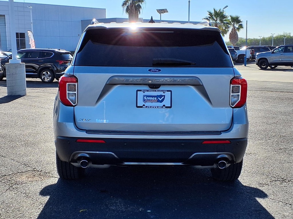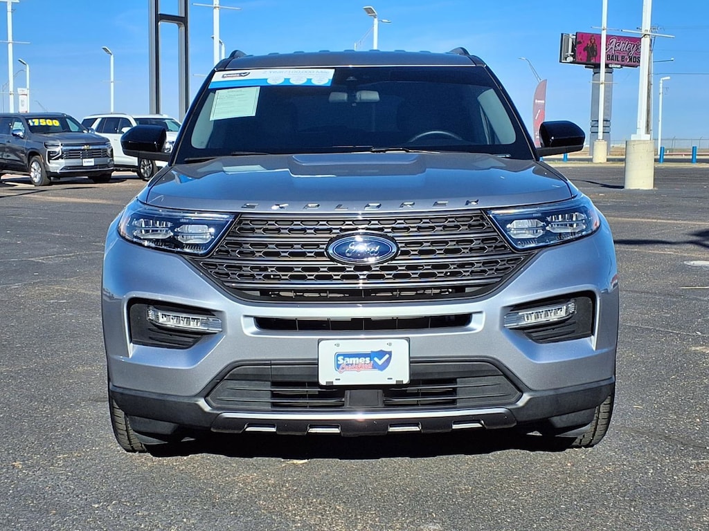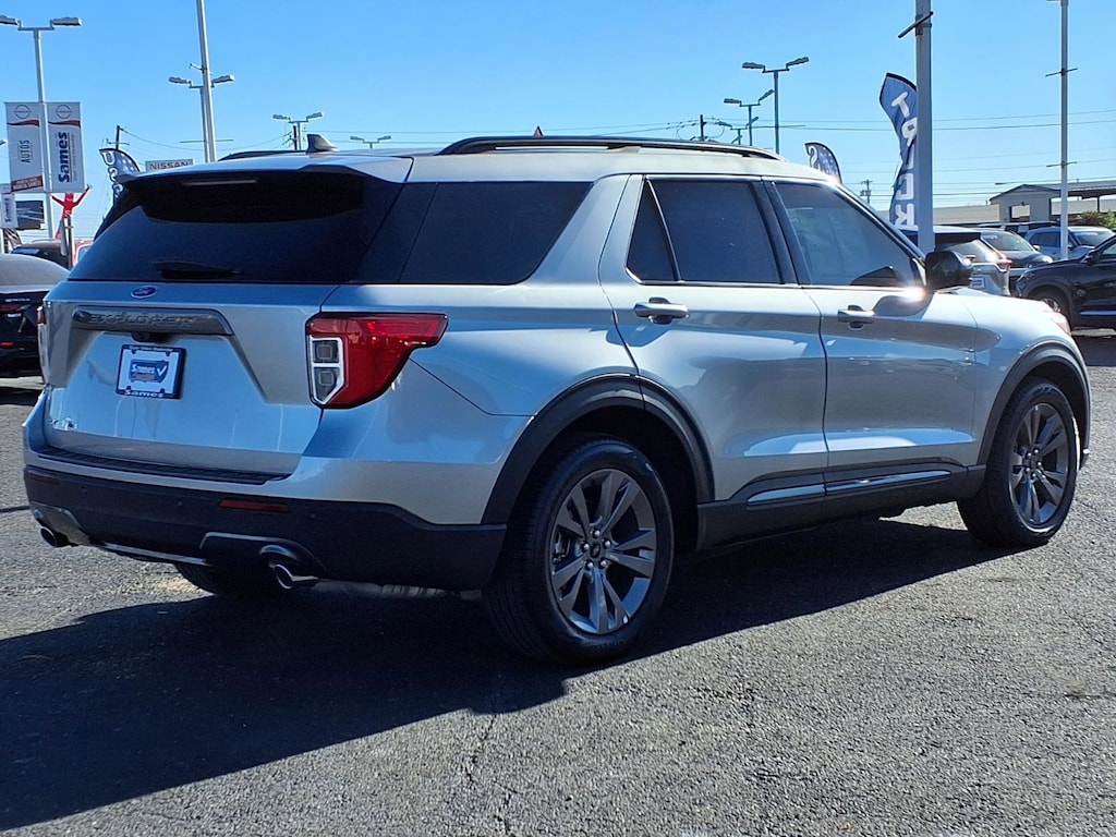 This 2022 Ford Explorer XLT in Iconic Silver Metallic comes with the following features: 2.3L EcoBoost I-4 10-Speed Automatic RWD Equipment Group 202A (Heated Steering Wheel, LED Fog Lamps, Remote Start System, and SecuriCode Keyless Entry Keypad), Ford Co-Pilot360 Assist+ (Evasive Steering Assist, Intelligent Adaptive Cruise Control, Speed Sign Recognition, and Voice-Activated Touchscreen Navigation System), XLT Sport Appearance Package (Wheels: 20" 10-Spoke Carbonized Gray-Painted), Wheels: 18" 5-Spoke Silver-Painted Aluminum, 3.58 Non-Limited-Slip Rear Axle Ratio, 3rd row seats: bench, 4-Wheel Disc Brakes, 4G LTE Wi-Fi Hotspot Removal Credit, 6 Speakers, ABS brakes, Air Conditioning, Alloy wheels, AM/FM radio: SiriusXM, AM/FM Stereo, Auto High-beam Headlights, Auto Start-Stop Removal, Automatic temperature control, Brake assist, Bumpers: body-color, Compass, Delay-off headlights, Driver door bin, Driver vanity mirror, Dual front impact airbags, Dual front side impact airbags, Electronic Stability Control, Emergency communication system: SYNC 3 911 Assist, Exterior Parking Camera Rear, FordPass Connect, Four wheel independent suspension, Front anti-roll bar, Front Bucket Seats, Front Center Armrest, Front dual zone A/C, Front License Plate Bracket, Front Parking Sensors, Front reading lights, Fully automatic headlights, Heated door mirrors, Heated front seats, Illuminated entry, Knee airbag, Leather steering wheel, Low tire pressure warning, Navigation System, Occupant sensing airbag, Outside temperature display, Overhead airbag, Overhead console, Panic alarm, Passenger door bin, Passenger vanity mirror, Power door mirrors, Power driver seat, Power Liftgate, Power passenger seat, Power steering, Power windows, Rear anti-roll bar, Rear reading lights, Rear window defroster, Rear window wiper, Remote keyless entry, Roof rack: rails only, Security system, Speed control, Speed-sensing steering, Speed-Sensitive Wipers, Split folding rear seat, Spoiler, Steering wheel mounted audio controls, SYNC 3 Communications & Entertainment System, SYNC 3/Apple CarPlay/Android Auto, Tachometer, Telescoping steering wheel, Tilt steering wheel, Traction control, Trip computer, Unique Cloth Captain's Chairs, and Variably intermittent wipers.