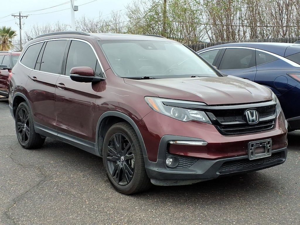This 2022 Honda Pilot Special Edition in comes with the following features: 3.5L V6 24V SOHC i-VTEC 9-Speed Automatic FWD 3rd row seats: split-bench, 4-Wheel Disc Brakes, 4.33 Axle Ratio, 7 Speakers, A/V remote: CabinControl, ABS brakes, Air Conditioning, Alloy wheels, AM/FM radio: SiriusXM, Apple CarPlay/Android Auto, Auto High-beam Headlights, Auto-dimming Rear-View mirror, Automatic temperature control, Blind Spot Information (BSI) System warning, Brake assist, Bumpers: body-color, Delay-off headlights, Driver door bin, Driver vanity mirror, Dual front impact airbags, Dual front side impact airbags, Electronic Stability Control, Emergency communication system: HondaLink Assist, Exterior Parking Camera Rear, Forward collision: Collision Mitigation Braking System (CMBS) + FCW mitigation, Four wheel independent suspension, Front anti-roll bar, Front Bucket Seats, Front Center Armrest, Front dual zone A/C, Front fog lights, Front reading lights, Fully automatic headlights, Garage door transmitter: HomeLink, Heated door mirrors, Heated Front Bucket Seats, Heated front seats, Illuminated entry, Lane departure: Lane Keeping Assist System (LKAS) active, Leather Seat Trim, Low tire pressure warning, Memory seat, Occupant sensing airbag, Outside temperature display, Overhead airbag, Overhead console, Panic alarm, Passenger door bin, Passenger vanity mirror, Power door mirrors, Power driver seat, Power Liftgate, Power moonroof, Power passenger seat, Power steering, Power windows, Radio data system, Radio: 215-Watt Audio System, Rear air conditioning, Rear anti-roll bar, Rear reading lights, Rear seat center armrest, Rear window defroster, Rear window wiper, Reclining 3rd row seat, Remote keyless entry, Roof rack: rails only, Security system, Speed control, Speed-sensing steering, Speed-Sensitive Wipers, Split folding rear seat, Spoiler, Steering wheel mounted audio controls, Tachometer, Telescoping steering wheel, Tilt steering wheel, Traction control, Trip computer, Turn signal indicator mirrors, Variably intermittent wipers, and Wheels: 20" Exclusive Gloss Black Alloy.