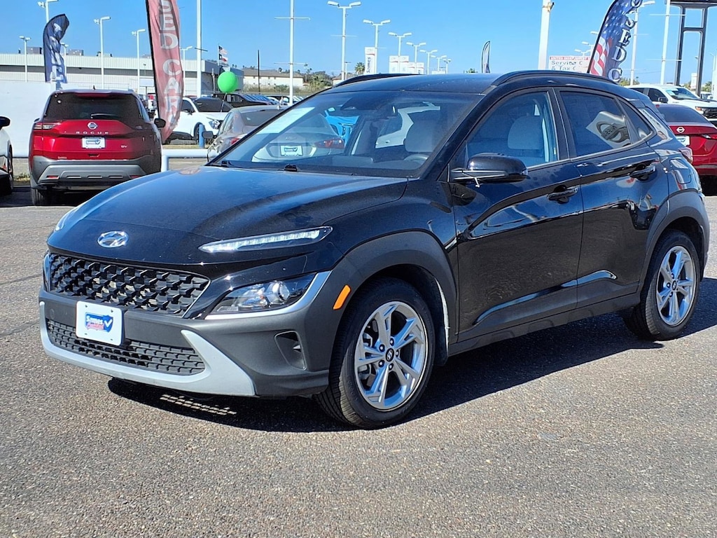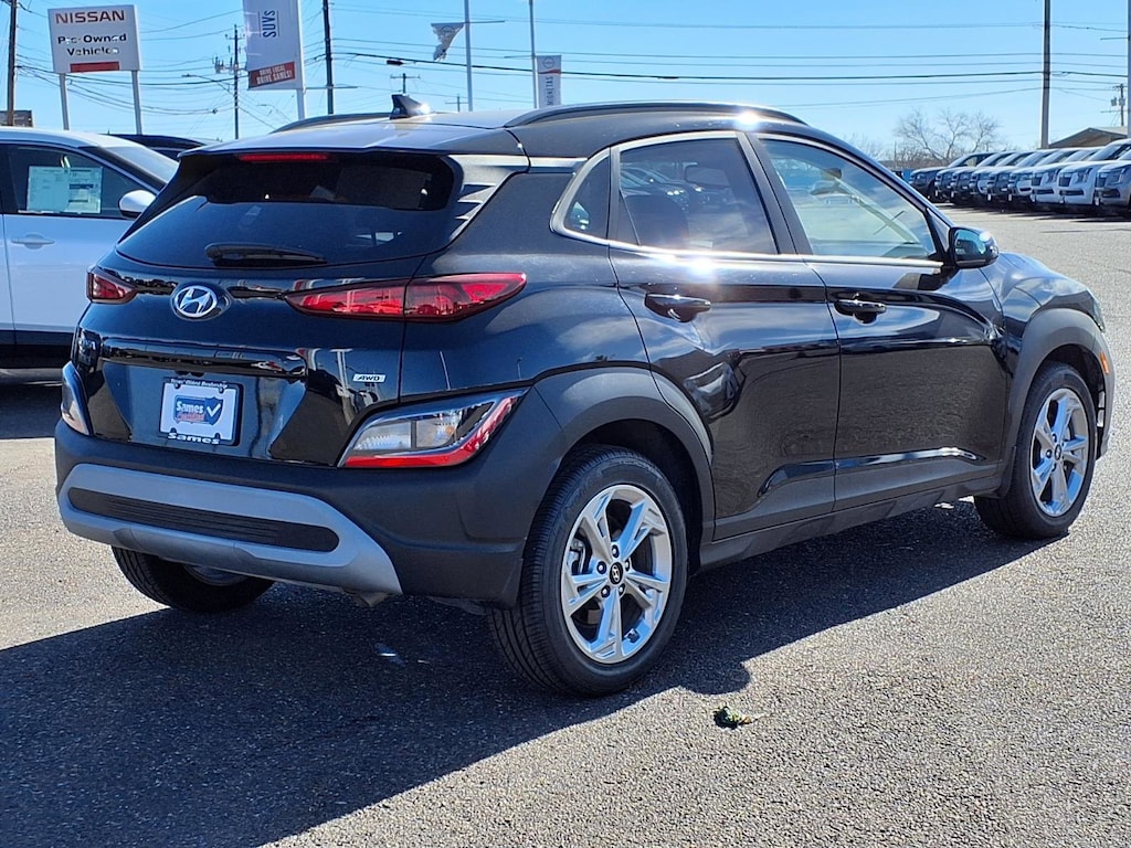 This 2023 Hyundai Kona SEL in Abyss Black Pearl comes with the following features: 2.0L I4 DOHC Dual CVVT CVT AWD Option Group 01, 17" x 7.0J Alloy Wheels, 4-Wheel Disc Brakes, 5.715 Axle Ratio, 6 Speakers, ABS brakes, Air Conditioning, Alloy wheels, AM/FM radio: SiriusXM, Apple CarPlay & Android Auto, Brake assist, Bumpers: body-color, Cargo Net, Cargo Tray, Carpeted Floor Mats, Cloth Seat Trim, Delay-off headlights, Driver door bin, Driver vanity mirror, Dual front impact airbags, Dual front side impact airbags, Electronic Stability Control, Emergency communication system: Blue Link Connected Car Service (3-year complimentary subscription), Exterior Parking Camera Rear, First Aid Kit, Four wheel independent suspension, Front & Rear Mudguards, Front anti-roll bar, Front Bucket Seats, Front Center Armrest, Front reading lights, Fully automatic headlights, Heated door mirrors, Illuminated entry, Low tire pressure warning, Occupant sensing airbag, Outside temperature display, Overhead airbag, Overhead console, Panic alarm, Passenger door bin, Passenger vanity mirror, Power door mirrors, Power driver seat, Power steering, Power windows, Radio: AM/FM/HD/SiriusXM Audio System, Rear anti-roll bar, Rear seat center armrest, Rear window defroster, Rear window wiper, Remote keyless entry, Security system, Speed control, Speed-sensing steering, Split folding rear seat, Spoiler, Steering wheel mounted audio controls, Tachometer, Telescoping steering wheel, Tilt steering wheel, Traction control, Trip computer, Turn signal indicator mirrors, and Variably intermittent wipers.