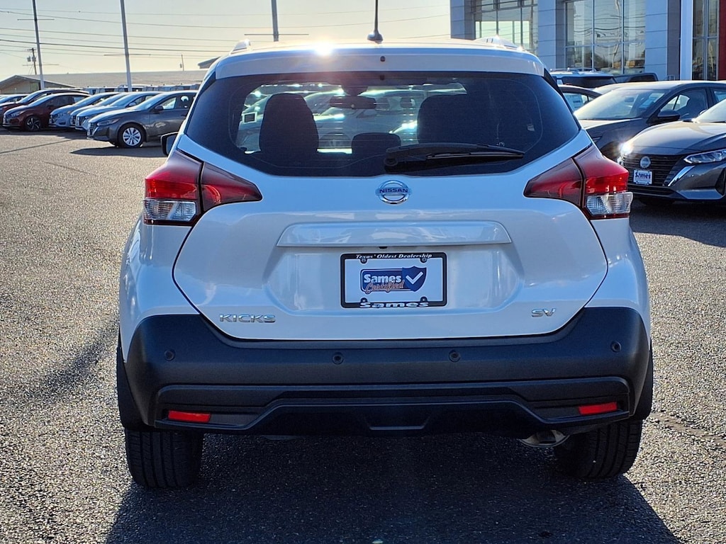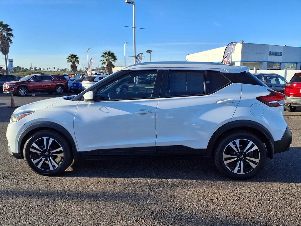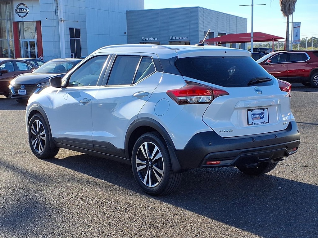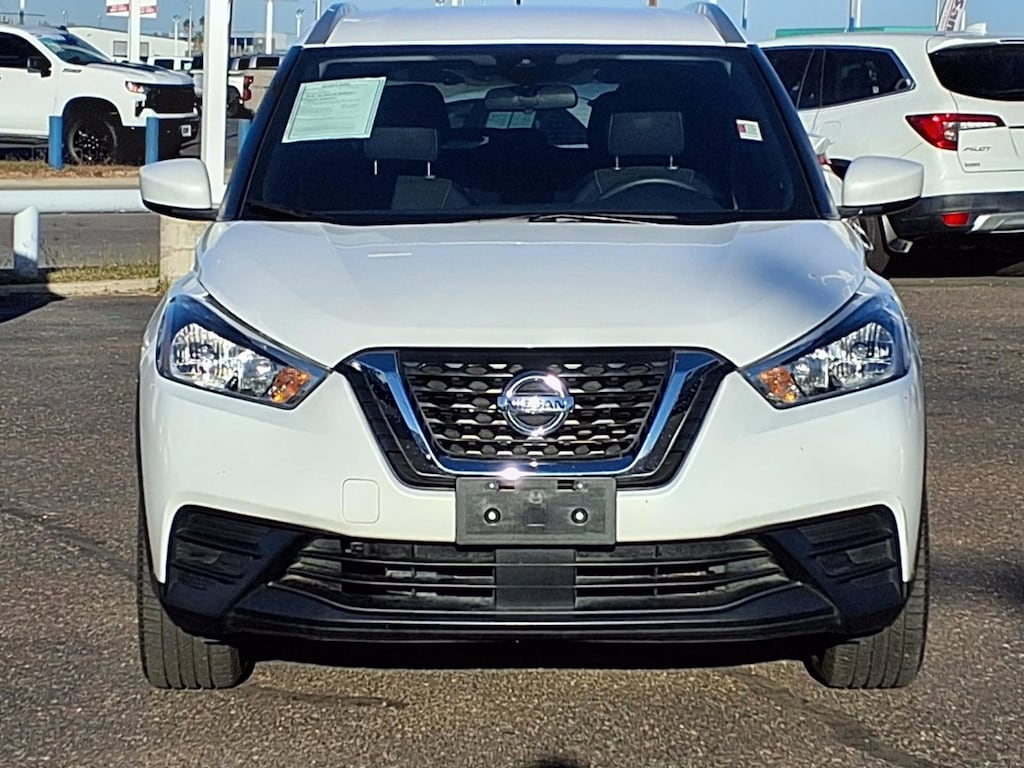 This 2020 Nissan Kicks SV in Aspen White Tricoat comes with the following features: 1.6L 4-Cylinder DOHC 16V CVT with Xtronic FWD 17" Alloy Wheels, 3.927 Axle Ratio, 6 Speakers, ABS brakes, Air Conditioning, Alloy wheels, AM/FM radio: SiriusXM, Auto High-beam Headlights, Automatic temperature control, Blind Spot Warning, Brake assist, Bumpers: body-color, Carpeted Floor Mats w/Cargo Mat, Center Armrest w/Storage, Cloth Seat Trim, Compass, Driver door bin, Driver vanity mirror, Driver's Seat Mounted Armrest, Dual front impact airbags, Dual front side impact airbags, Electronic Stability Control, Front anti-roll bar, Front Bucket Seats, Front reading lights, Front wheel independent suspension, Fully automatic headlights, Heated door mirrors, Illuminated entry, Knee airbag, Low tire pressure warning, NissanConnect featuring Apple CarPlay and Android Auto, Occupant sensing airbag, Outside temperature display, Overhead airbag, Panic alarm, Passenger door bin, Passenger vanity mirror, Power door mirrors, Power steering, Power windows, Radio data system, Radio: AM/FM Audio System, Rear Parking Sensors, Rear reading lights, Rear side impact airbag, Rear window defroster, Rear window wiper, Remote keyless entry, Roof rack: rails only, Special Paint - Aspen White, Speed control, Splash Guards Grain (4 Piece), Split folding rear seat, Sport steering wheel, Steering wheel mounted audio controls, Tachometer, Telescoping steering wheel, Tilt steering wheel, Traction control, Trip computer, and Variably intermittent wipers.