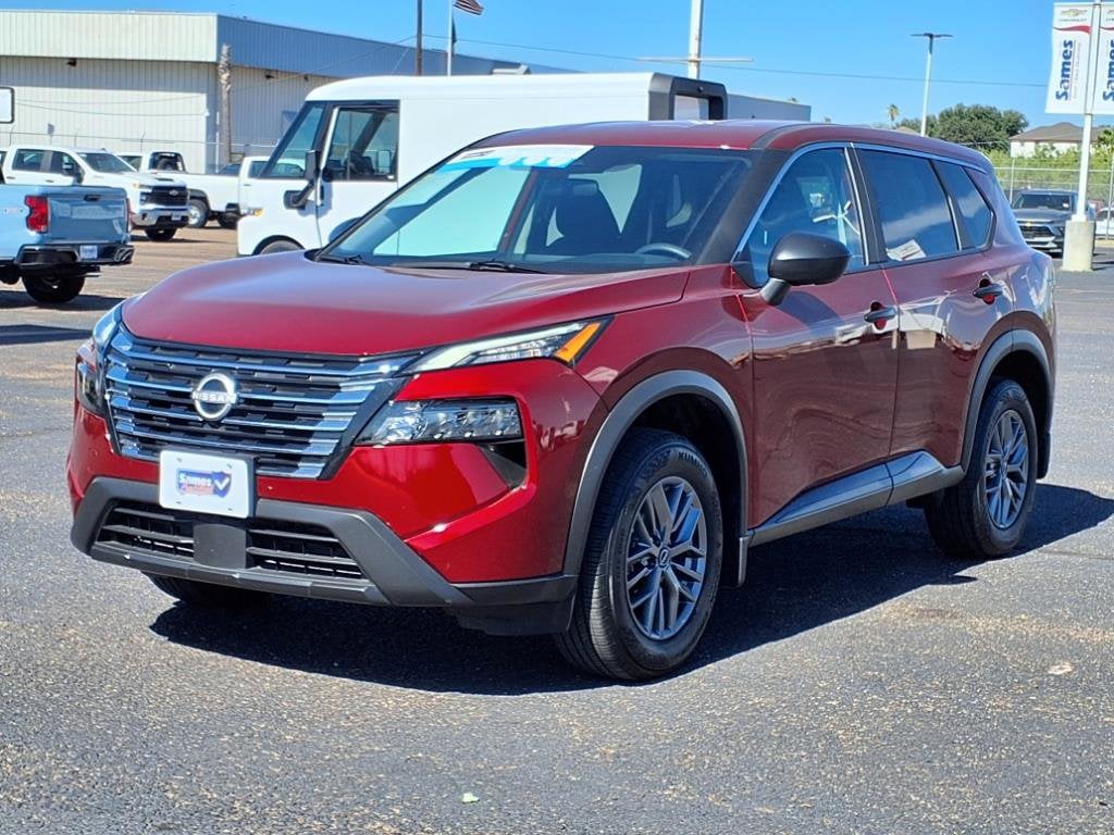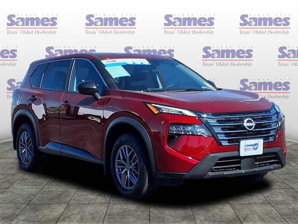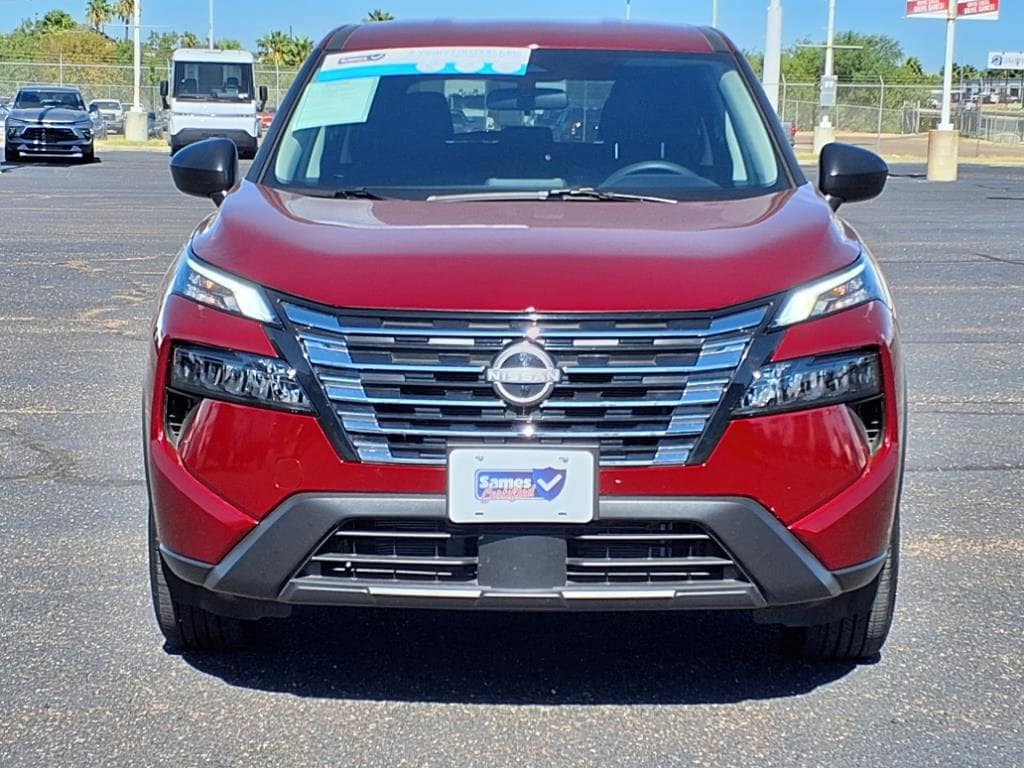 This 2025 Nissan Rogue S in Scarlet Ember Tintcoat comes with the following features: 1.5L DOHC CVT with Xtronic AWD Sames Certified Certified, AWD, 17" Aluminum Alloy Wheels, 4 Speakers, 4-Wheel Disc Brakes, ABS brakes, Air Conditioning, Alloy wheels, AM/FM radio: SiriusXM, Apple CarPlay/Android Auto, Auto High-beam Headlights, Black Splash Guards (Set of 4), Blind Spot Warning, Brake assist, Bumpers: body-color, Cloth Seat Trim, Delay-off headlights, Driver door bin, Driver vanity mirror, Dual front impact airbags, Dual front side impact airbags, Electronic Stability Control, First Aid Kit, Floor Mats w/1-Piece Cargo Area Protector, Four wheel independent suspension, Front anti-roll bar, Front Bucket Seats, Front Center Armrest, Front reading lights, Fully automatic headlights, Illuminated entry, Knee airbag, Low tire pressure warning, Occupant sensing airbag, Outside temperature display, Overhead airbag, Overhead console, Panic alarm, Passenger door bin, Passenger vanity mirror, Power door mirrors, Power steering, Power windows, Premium Paint, Radio data system, Radio: AM/FM NissanConnect, Rear anti-roll bar, Rear seat center armrest, Rear side impact airbag, Rear window defroster, Rear window wiper, Remote keyless entry, Speed control, Speed-sensing steering, Speed-Sensitive Wipers, Split folding rear seat, Spoiler, Steering wheel mounted audio controls, Tachometer, Telescoping steering wheel, Tilt steering wheel, Traction control, Trip computer, and Variably intermittent wipers.